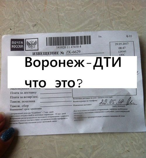 Récemment, les gens ont beaucoup moins tendance à consulter leurs boîtes aux lettres. Internet a remplacé de nombreuses lettres en papier. Si les enveloppes de courrier reçues précédemment apportaient une anticipation joyeuse, les lettres avec des symboles peu connus aujourd'hui pourraient même effrayer une personne. Dans cet article, vous pouvez découvrir ce que Voronezh-DTI est sur la notification par courrier.